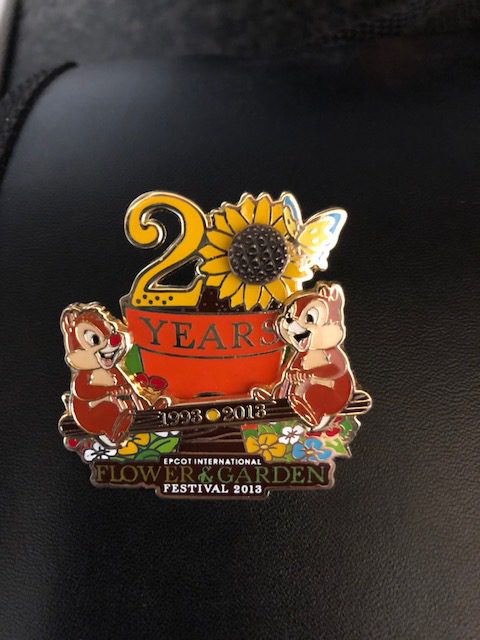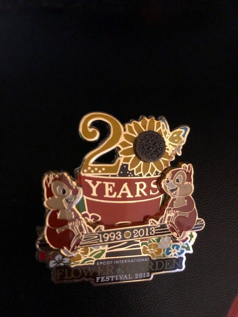 This limited edition pin was released to celebrate the 20th anniversary of Epcot’s Flower and Garden Festival back in 2013. The festival ran from March 6th to May 29th in 2013 (it began February 28th and doesn’t end until May 28th this year) which ties into the pins official release on March 6th.